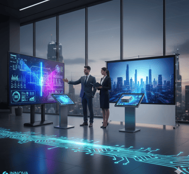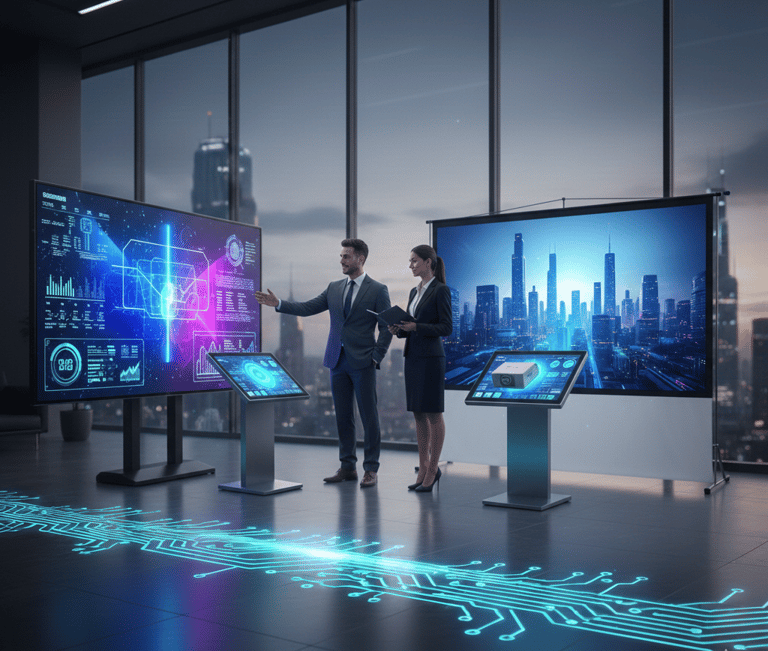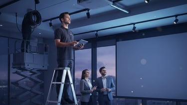 No solo vendemos equipos de última generación como pantallas interactivas, video walls y proyectores de alta gama; creamos experiencias visuales a su medida.